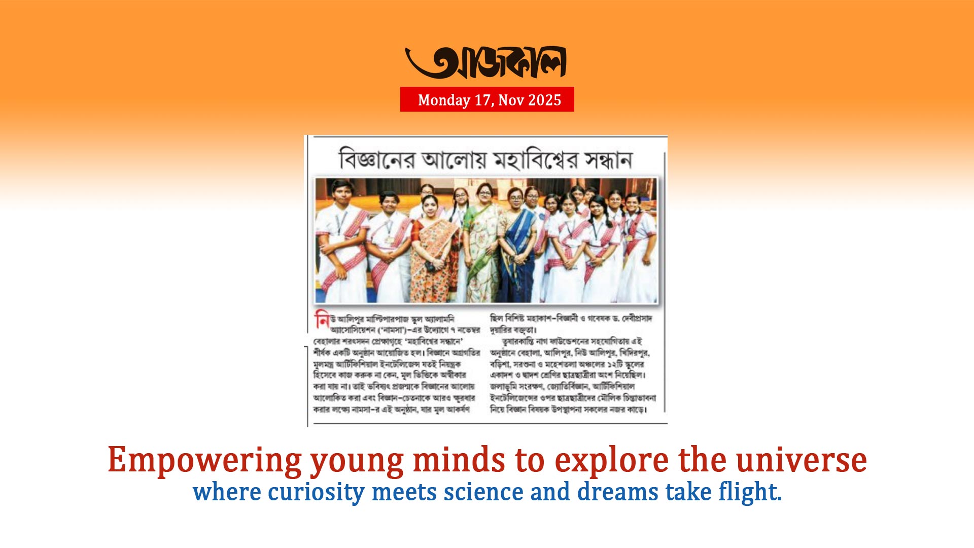 School celebrates 12th January, the Birthday of Swamiji in a pompous manner. Ashrama arranges various programmes to inculcate the dream of Swamiji for a healthy society in the pupil’s mind. A long procession followed by the march past, songs, music and banners proceeds from school towards New Alipore Petrol Pump where the statue of Swamiji is located to salute the image.
